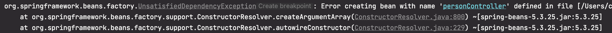 : Error creating bean with name 'personController' . . . 'personService' . . . 'personRepository' . . .