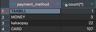 [ 웹개발 종합반의 결제수단별 주문건수 세어보는 쿼리 + 카운트 별 오름차순으로. ]