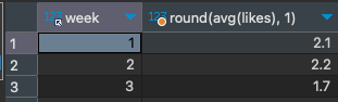 < 주차별로 like의 평균값을 반올림 : 소숫점 첫째 자리까지 >