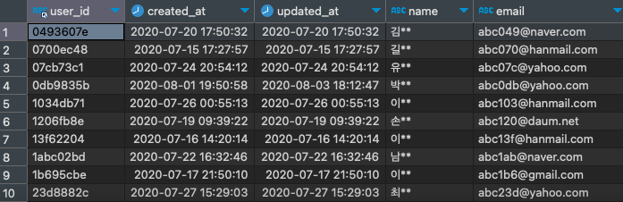 자세히 보면, name필드 값이 겹치지 않음을 알 수 있다.