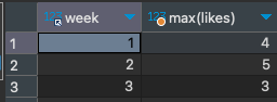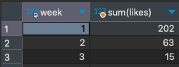 < 주차별로 like의 평균값을 반올림 : 소숫점 첫째 자리까지 >