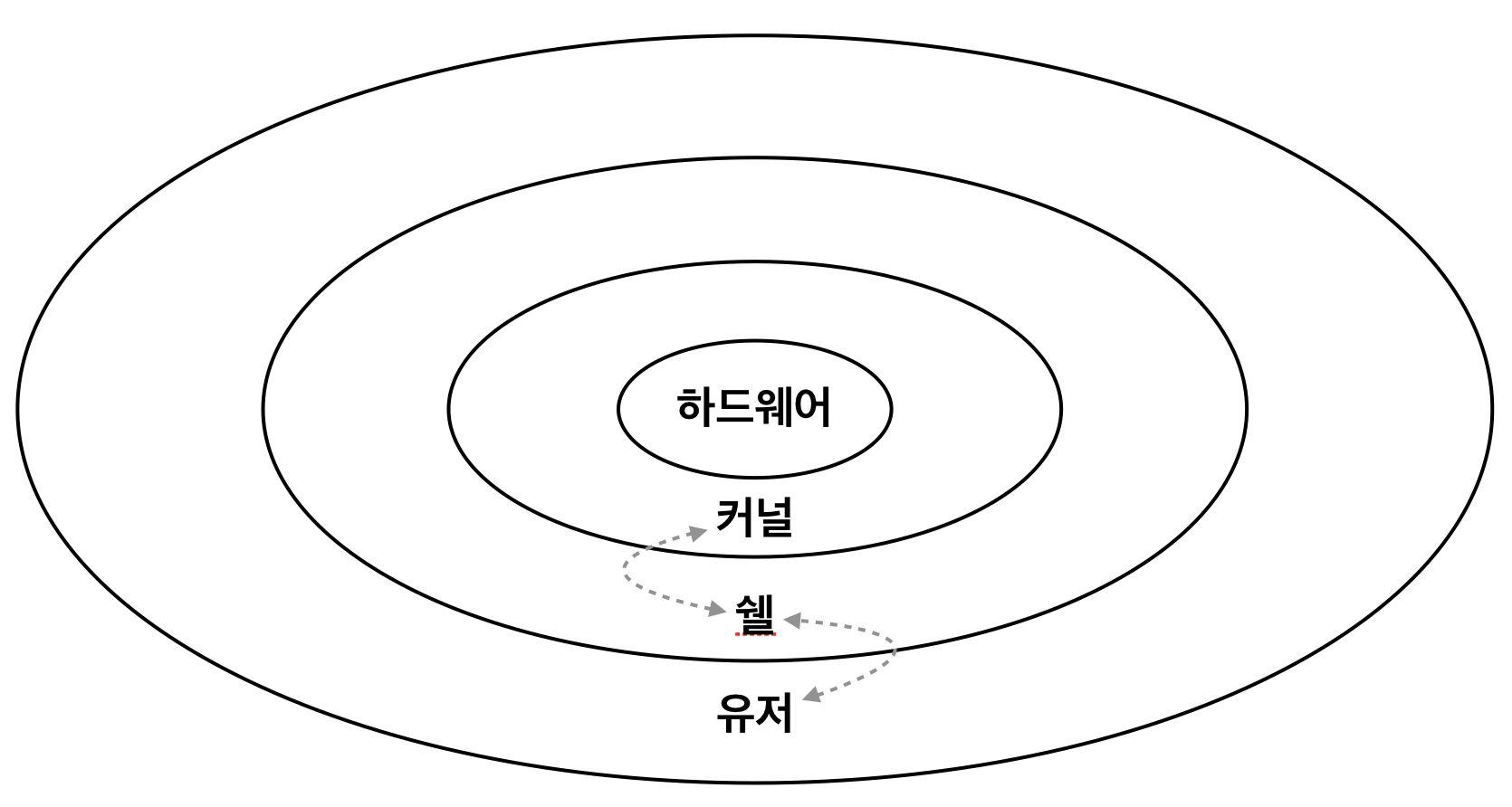 인터페이스(쉘)은 이러한 커널을 사용자가 보다 편리하게 사용할 수 있게 해준다.