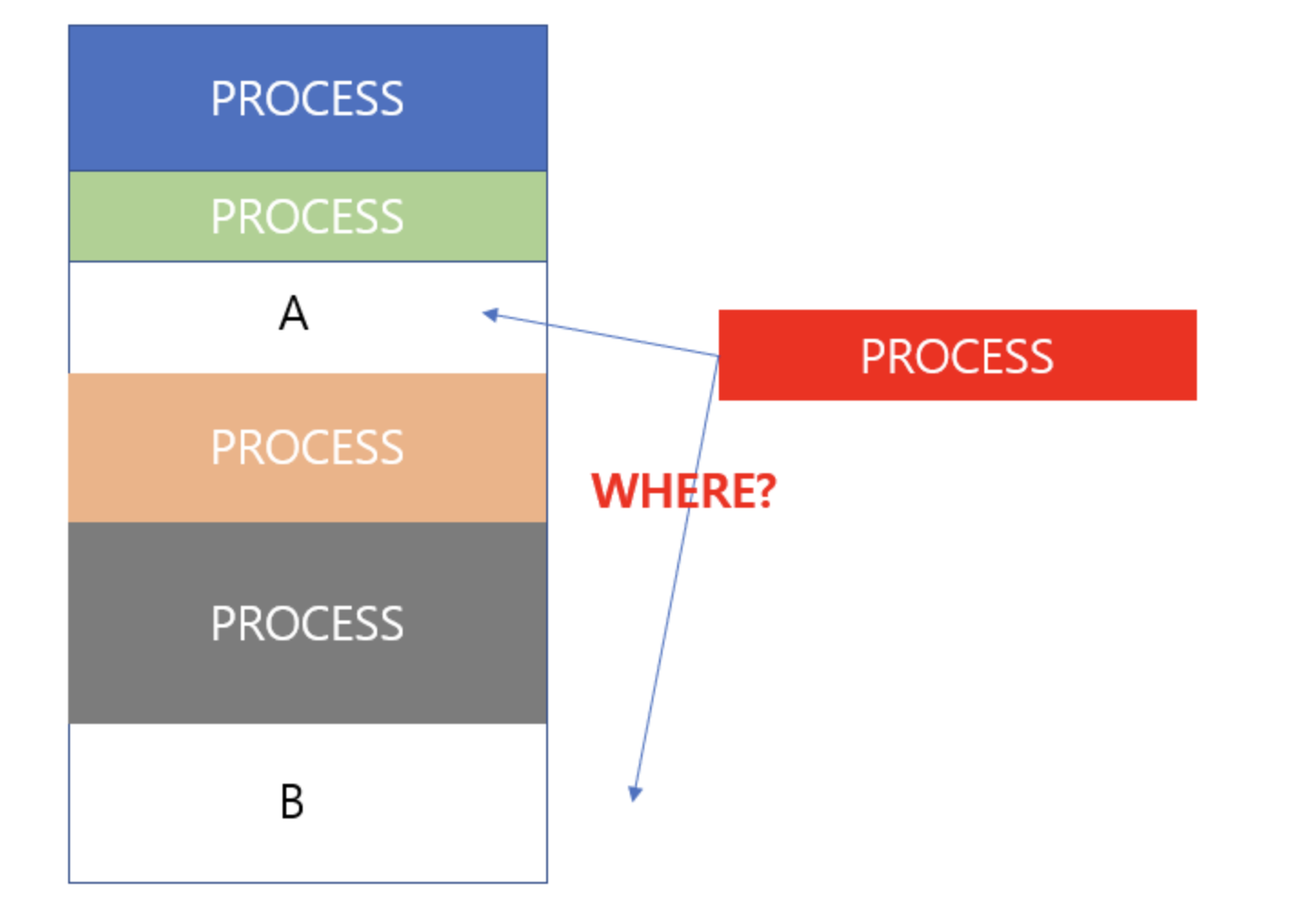 새로운 프로세스를 어디에 적재를 할 지 판단하는 알고리즘이 필요하다.