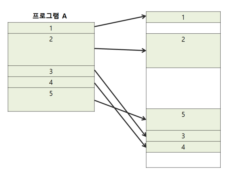 -> 하나의 프로세스를 여러 개의 조각으로 나누어 주기억장치 공간 내 분산하여 배치하는 기법.